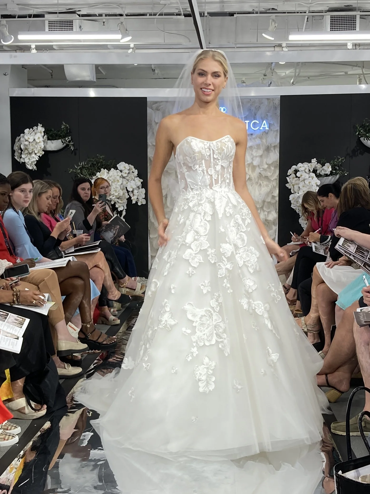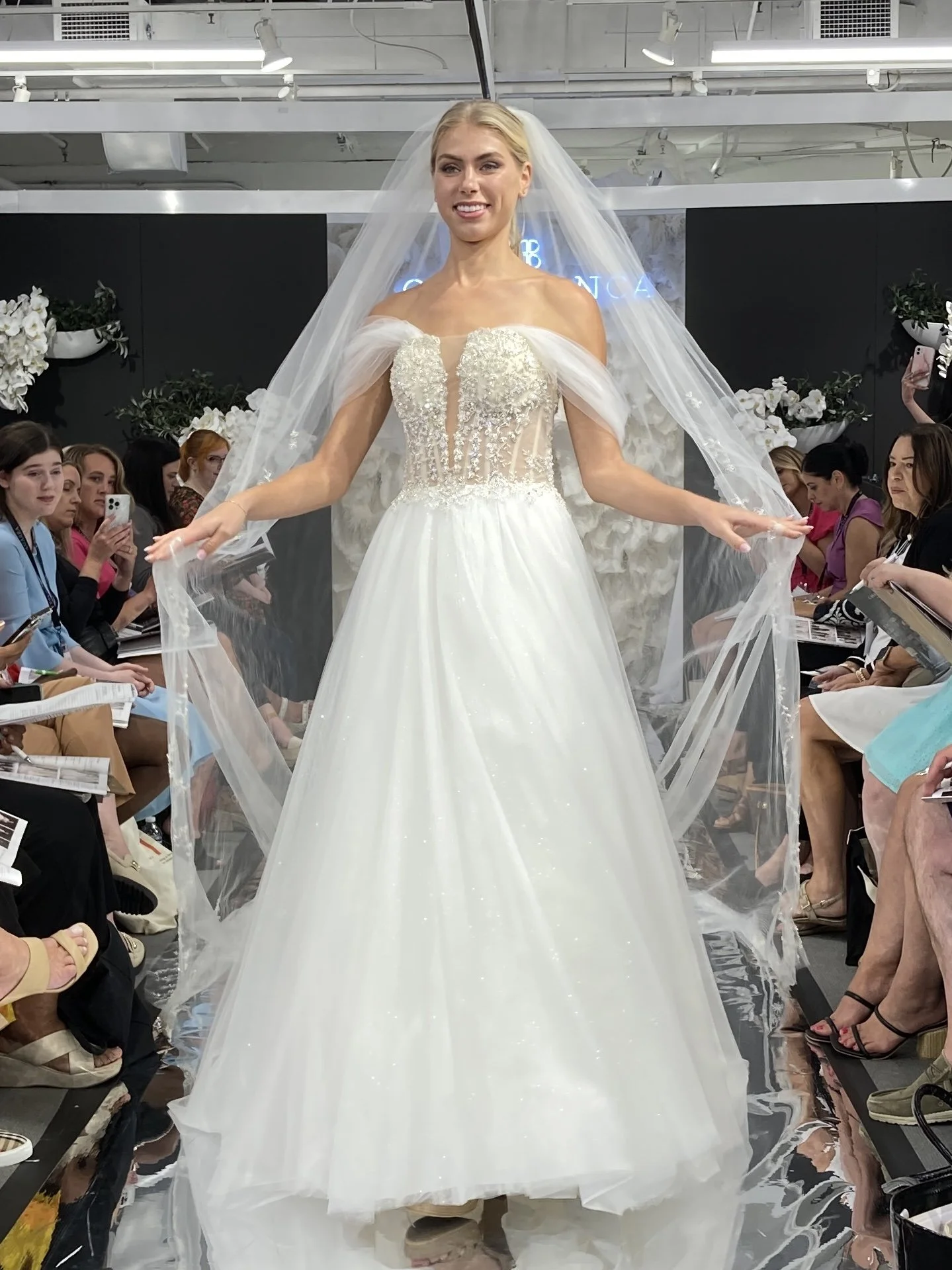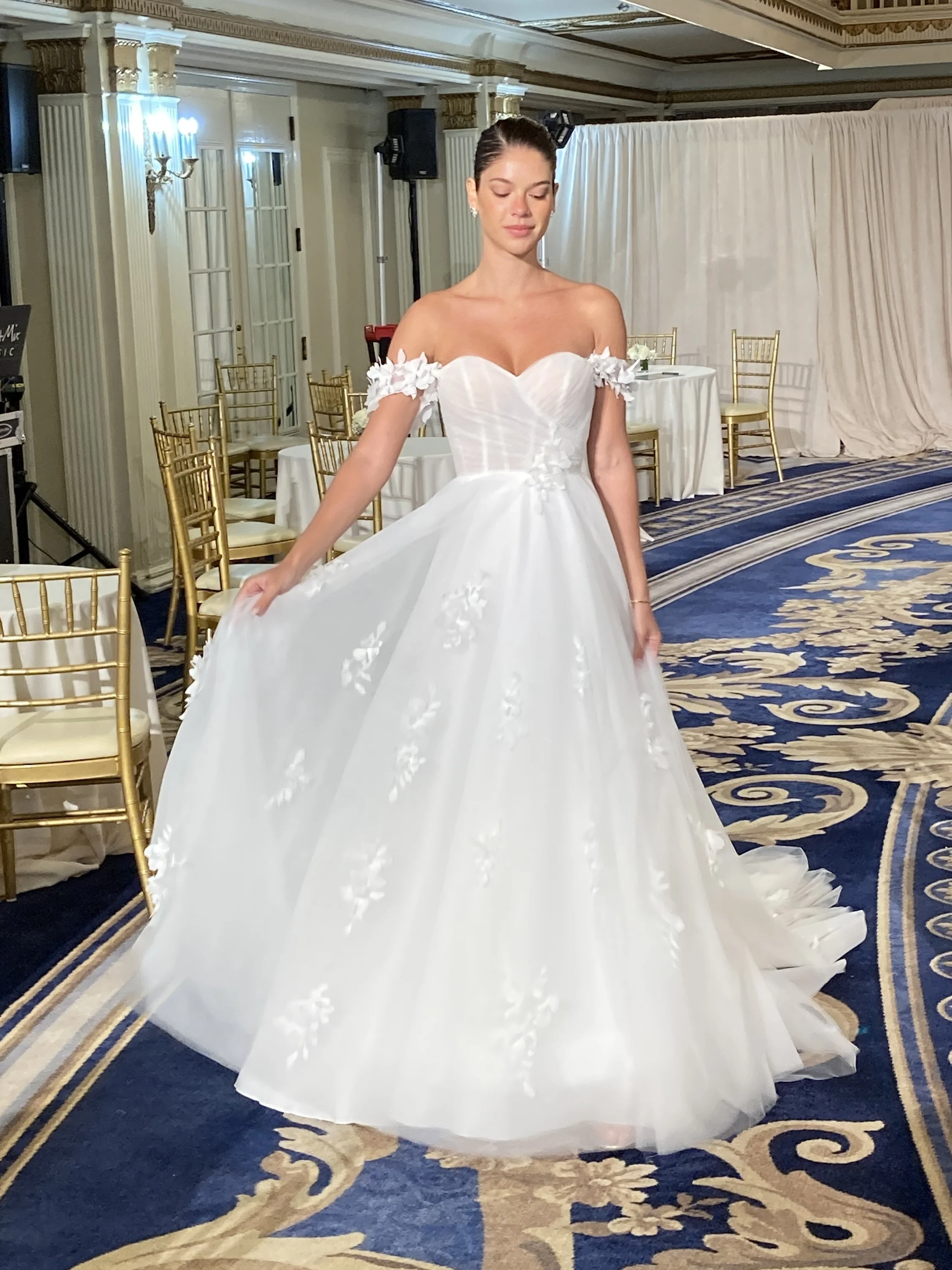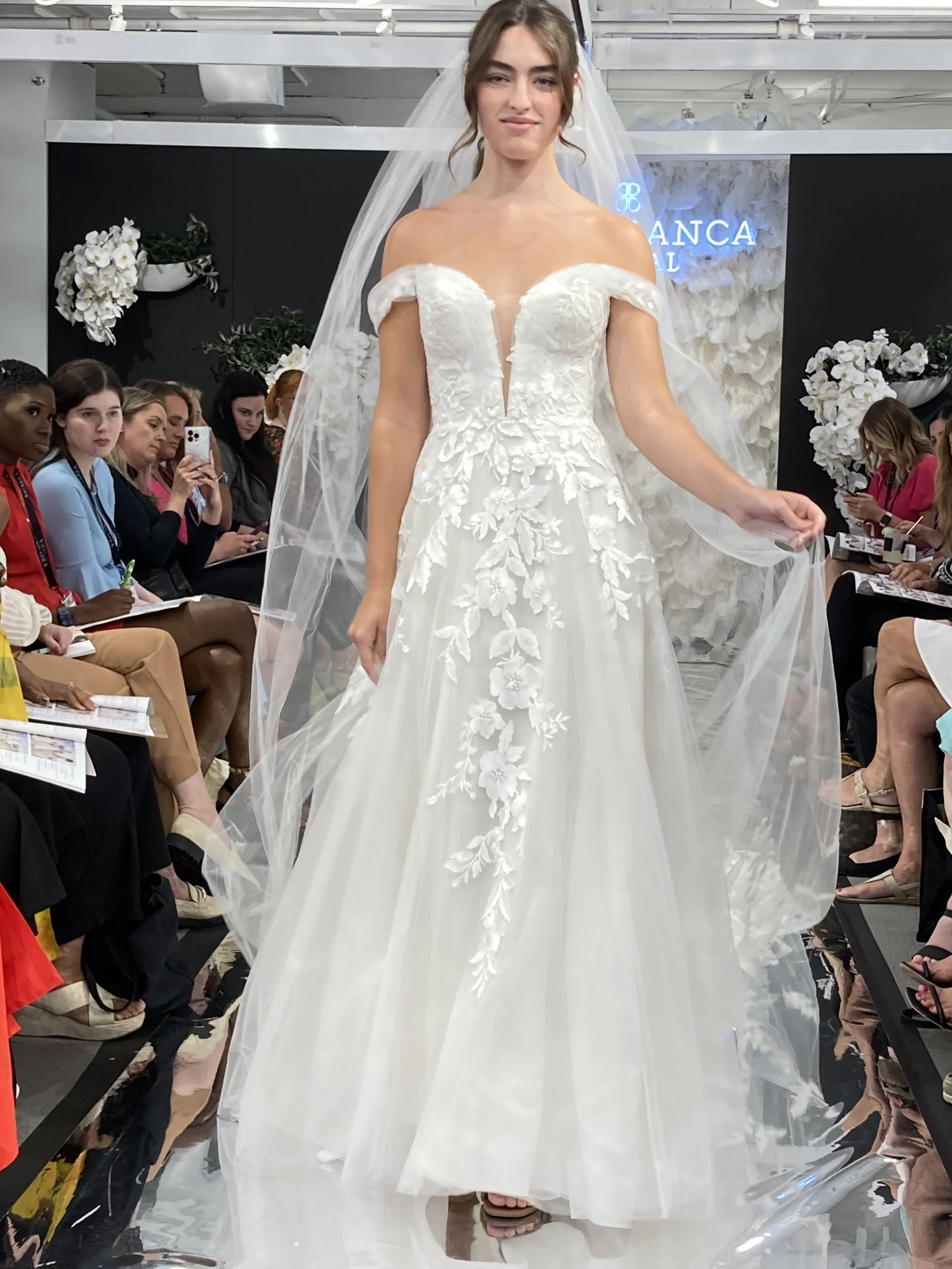 Do you ever wonder where all of these gorgeous gowns come from? Well, every year Denise, the owner of Savvi Bridal, sets off for Chicago to attend Bridal Fashion Week and the Chicago Bridal Market. This is where all of your favorite bridal designers showcase their latest collections in exclusive runway shows and exhibits. Then Denise has the difficult job of sifting through all the pretty (and there’s a lot of pretty) to bring you the best of the best back to Savvi Bridal. And we can’t wait to show you what she found this year! The new gowns will start arriving in-store in January of 2024, but here’s a little sneak peek of what to expect…